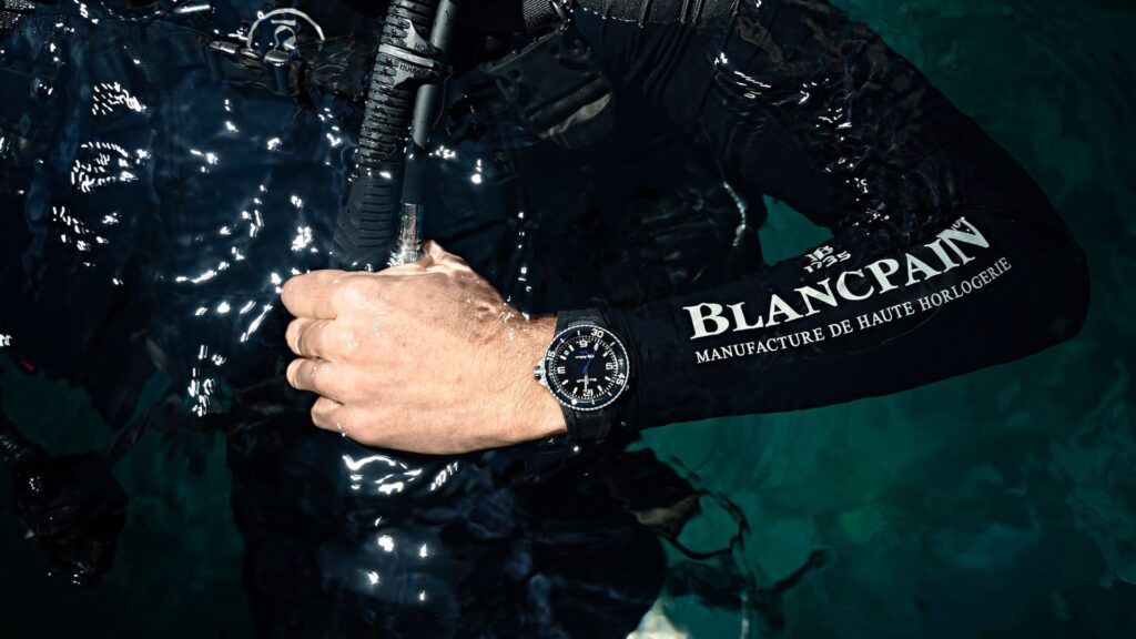 Cada detalle ha sido pensado para la exigencia del buceo profesional. La pieza soporta una presión de hasta 300 metros de profundidad e incorpora una válvula de helio ubicada a las 10, con diseño idéntico a la corona atornillada, reflejo de su atención minuciosa al detalle. El fondo de la caja presenta un perfil biselado y cristal de zafiro transparente que permite admirar el movimiento automático 1315A, con espiral de silicio, reserva de marcha de cinco días y rotor calado decorado con el emblema azul de Blancpain Ocean Commitment (BOC).