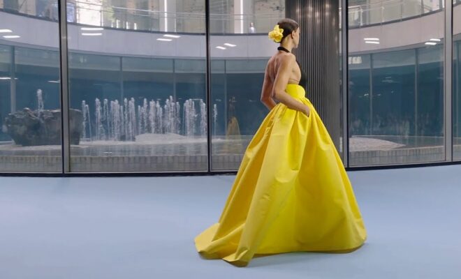 El icónico jardín Sunken Garden de Isamu Noguchi, en el distrito financiero de Manhattan, sirvió de escenario para el desfile de Carolina Herrera Primavera-Verano 2025. La propuesta, liderada por Wes Gordon, combinó la pureza del blanco y negro con explosivos toques de rojo, rosa, amarillo y azul, creando un contraste entre la elegancia clásica y la vitalidad contemporánea.