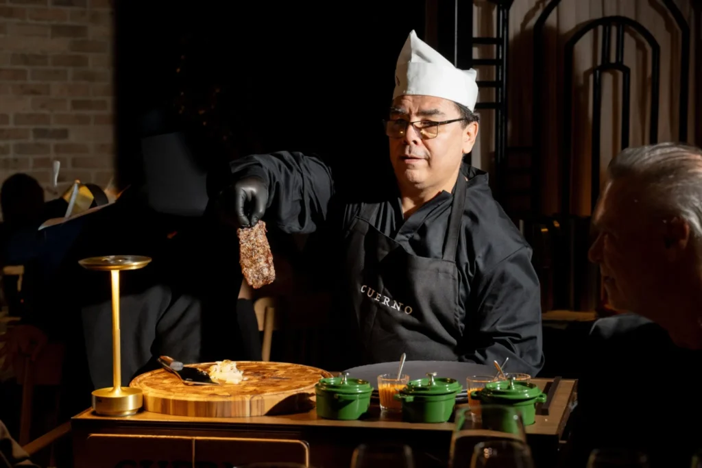 El servicio, otra joya del lugar, está inspirado en la hospitalidad norteña: cálido, cercano, impecable. Cada mesero, cada hostess, cada bartender ha sido capacitado para atender con la precisión del fine dining, pero con el corazón y naturalidad que caracterizan al norte de México. En Cuerno no hay rigidez, hay elegancia sin afectación. Desde la bienvenida hasta el postre, cada detalle está pensado para envolver, sorprender y enamorar.