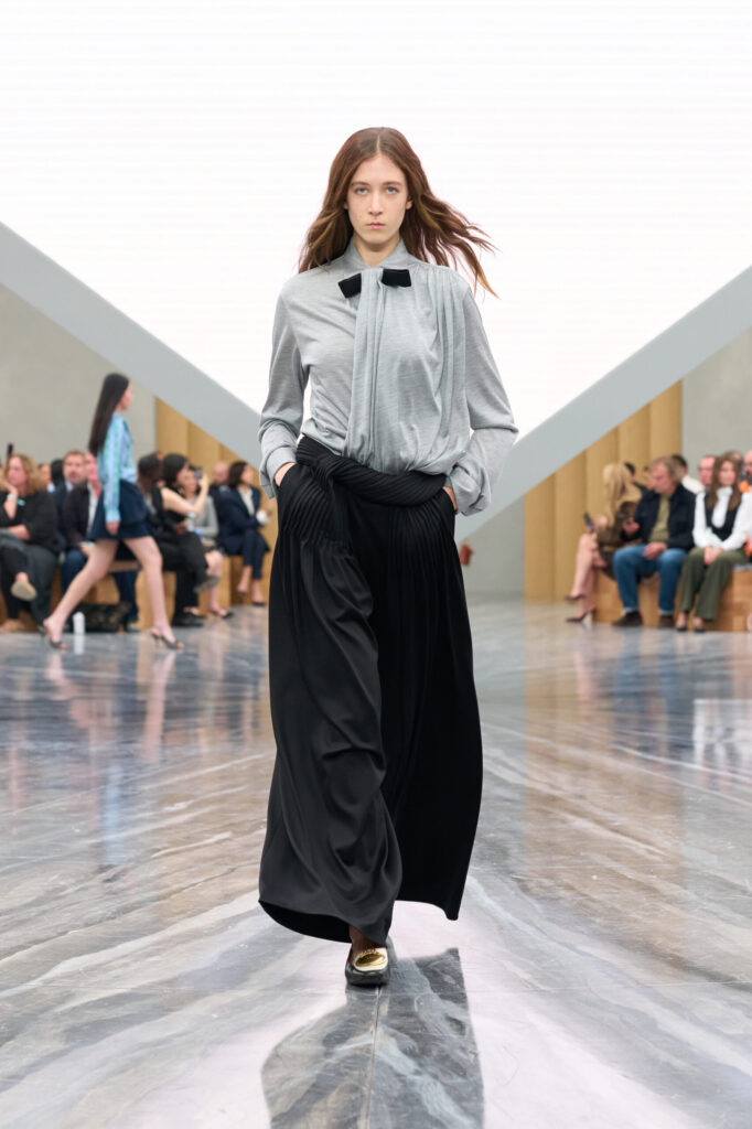 Nicolas Ghesquière presentó una propuesta que mezcla romanticismo histórico con ropa utilitaria. Detalles como cinturones tipo scarf, flecos, siluetas suavizadas y materiales lujosos dieron forma a un concepto aspiracional y a la vez práctico para el día a día. La colección de Louis Vuitton SS26 logra equilibrar lujo y funcionalidad, consolidando su visión innovadora.