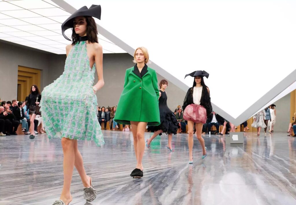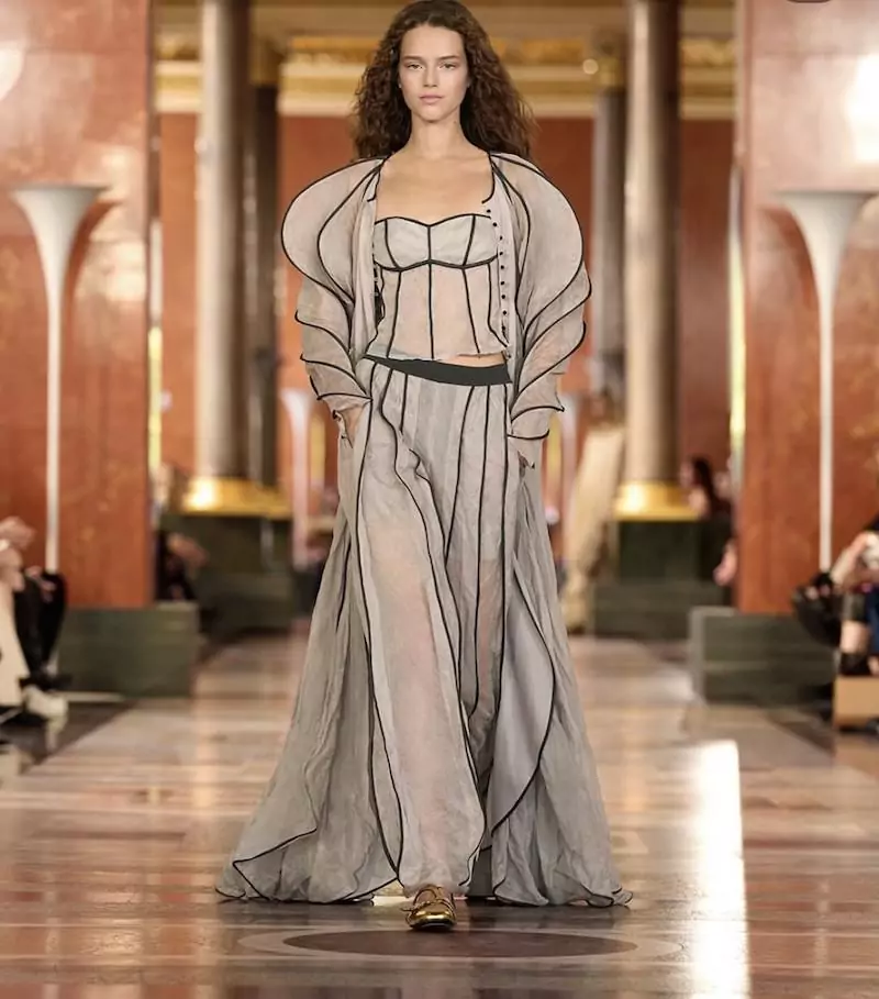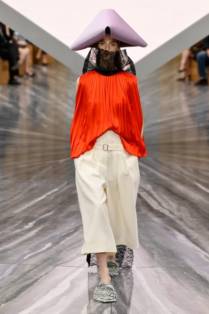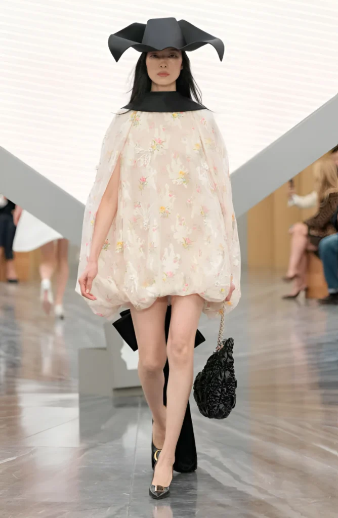 Jonathan Anderson asumió el desafío de la línea femenina de Dior, combinando heritage y reinvención contemporánea. La colección incorporó cortes estructurados, volúmenes llamativos y sombreros de fantasía, logrando un equilibrio entre tradición y modernidad que impresionó a los asistentes.