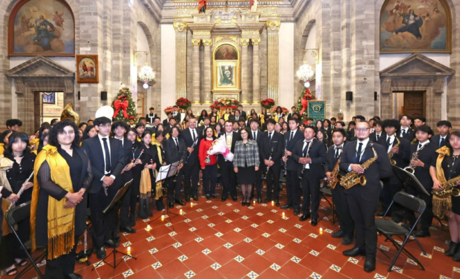 La Universidad Autónoma del Estado de México (UAEMex) realizó la 13° edición de su tradicional concierto navideño, presentado por la Banda Universitaria de Marcha en la catedral de Tenancingo. El evento contó con la presencia de la rectora Martha Patricia Zarza Delgado y de Janette Jaimes García, encargada del despacho de la dirección del Plantel ‘Dr. Pablo González Casanova’ de la Escuela Preparatoria.