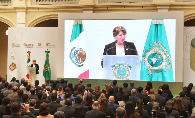La Universidad Autónoma del Estado de México (UAEMéx) está a la vanguardia en los ámbitos nacional e internacional, como dan cuenta todos los logros y avances sobre los que hoy se informó, enfatizó la jefa del ejecutivo mexiquense, Delfina Gómez Álvarez, al encabezar el cuarto informe de actividades del rector Carlos Eduardo Barrera Díaz al frente de la Administración 2021-2025 de la institución educativa.
