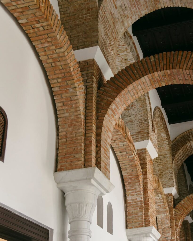 Los detalles arquitectónicos, desde los muros encalados hasta los patios interiores y las fuentes que acompañan el recorrido, refuerzan esa sensación de retiro protegido del ruido cotidiano.